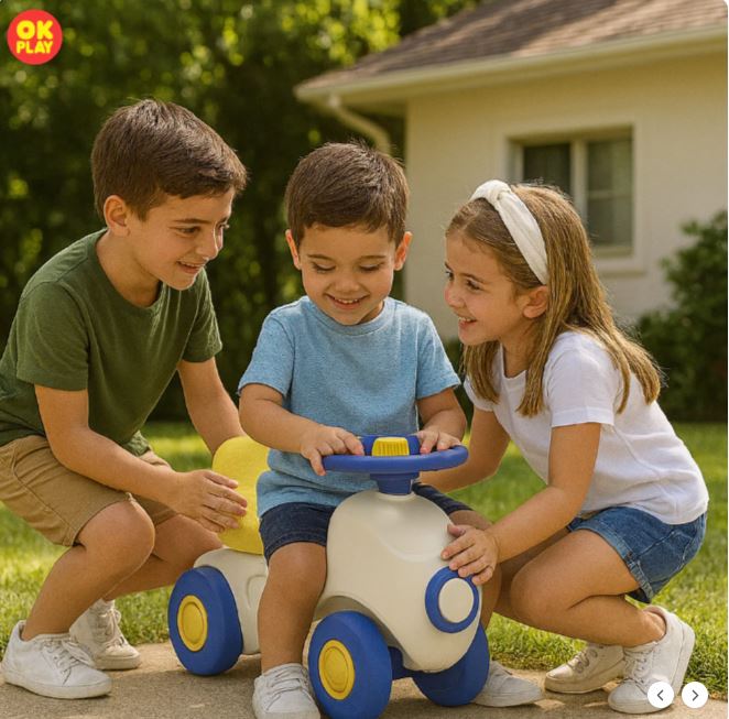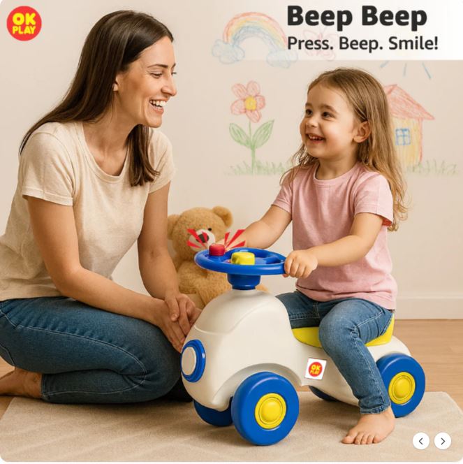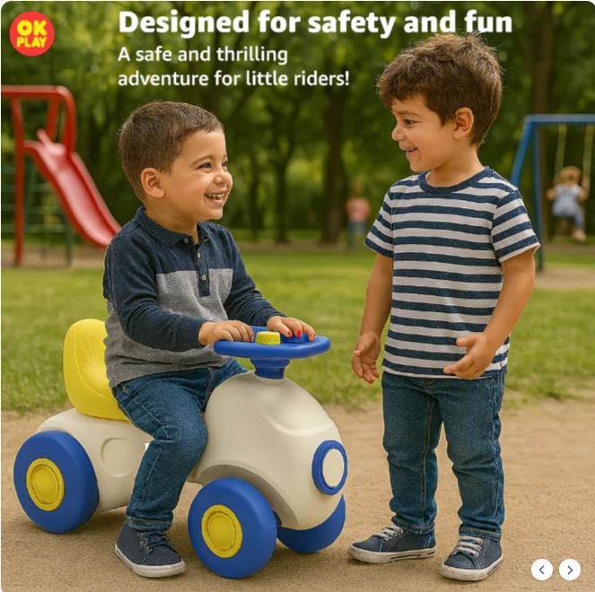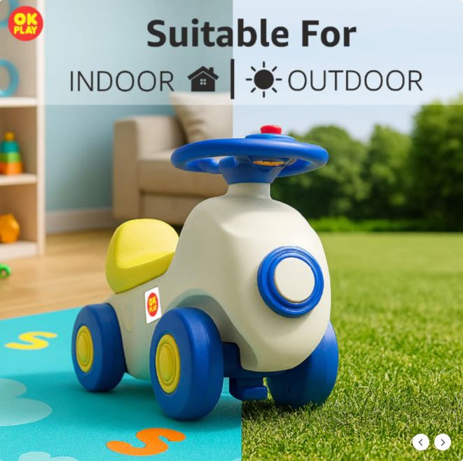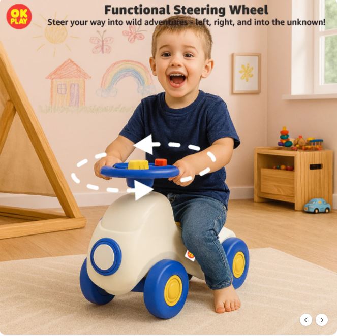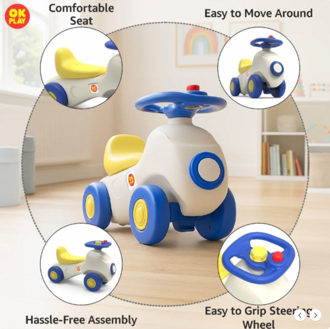 Car Ride On Push On for Kids | Backrest | Easy-Grip Steering Wheel | Anti Skid | Four Wheel Ride | Indoor & Outdoor Ride On | Light-Weight | Durable | Portable | Perfect Gift | Car Theme