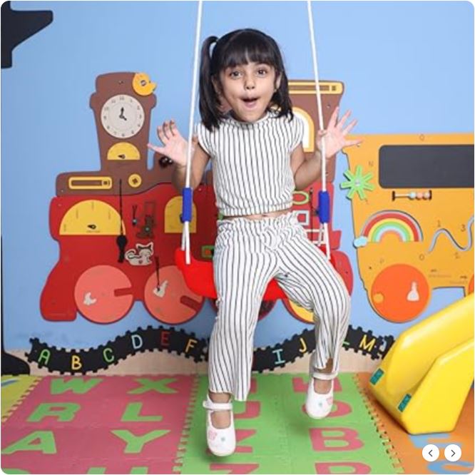 Fun Flier | Swing For Kid | Adjustable Rope |Safe & Secure | Indoor & Outdoor Play | Comfort Seating | Tree Swing for Playground | Portable | Easy Storage | Perfect Gift | Color Red & Green