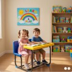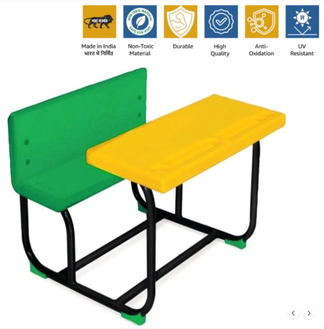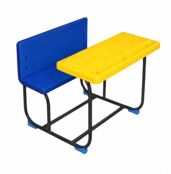 Little Scholars | 2 Seater | HDPE Top | Metal Legs | Integrated Desk & Chair | Smooth Rounded Edges | Backrest Support | Comfortable & Modern Design | Durable | High Quality Material | Ideal for Home & Classroom