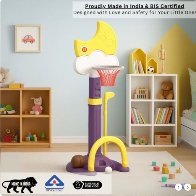 Moon Basketball | with Hockey Stick & Ball | Height Adjustable Height | Perfect for Home, School & Playground | Indoor & Outdoor Play | Sport Toy for Kid | Fun Activity | Perfect Gift | Sport Toy | Large