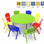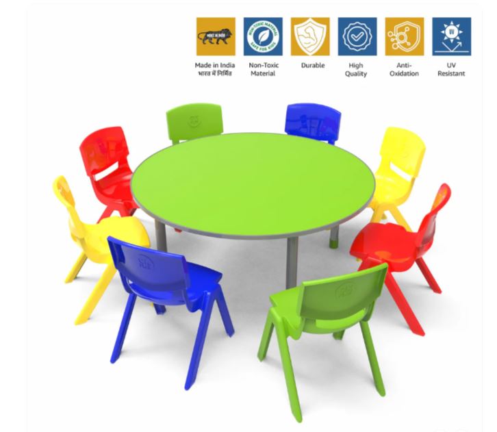 Round Table Wooden | Round Shape | 5 Seater | MDF Top | Metal Legs | Smooth, Rounded Edges | Low Maintenance | Easy Assembly | Home & Classroom Use | Ideal for Learning & Creative Activities