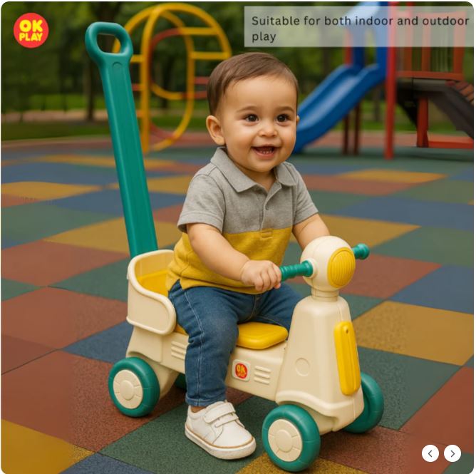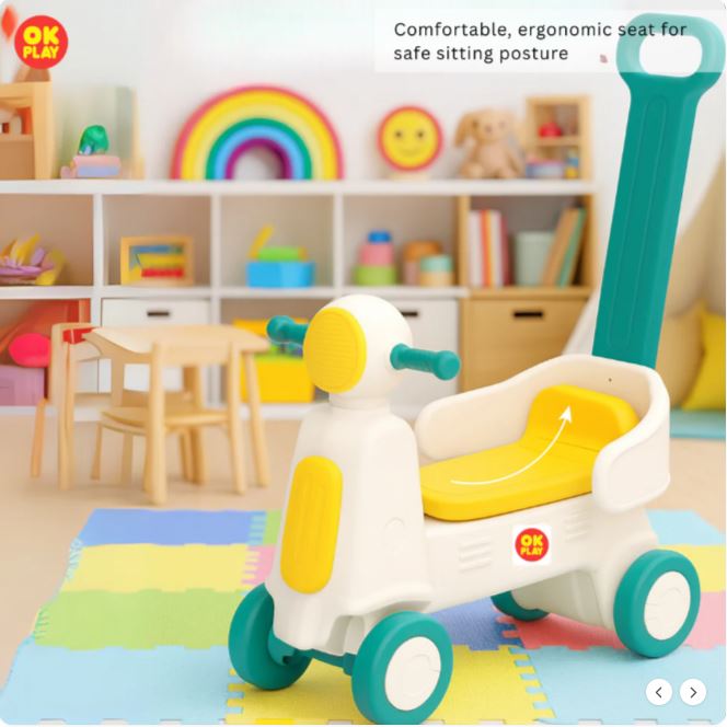 Scooter Ride On Push On for Kids | Backrest | Easy Grip | Anti Skid | Four Wheel Ride | Indoor & Outdoor Ride On | Light-Weight | Durable | Portable | Perfect Gift