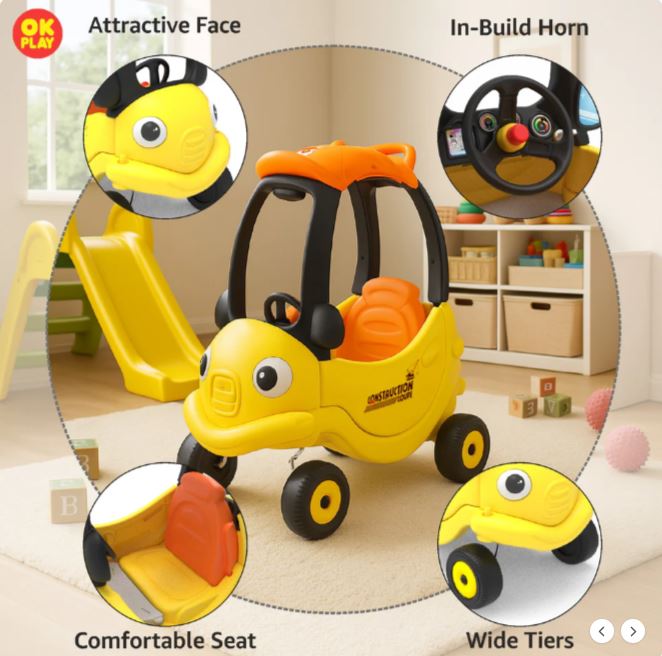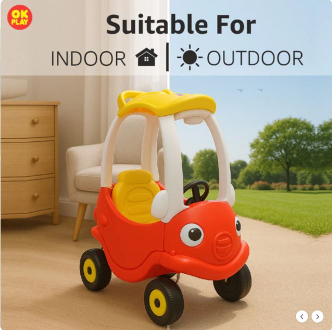 Sportz Coupe Car | Ride On & Push On Car | Steering Wheel | Doors on Both side | Round Edges | Indoor & Outdoor Play | Perfect for Home, School & Playground | Perfect Gift | Colour Red & Yellow Two Colours
