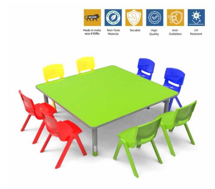 Square Table Wooden | Square Shape | 8 Seater | MDF Top | Metal Legs | Smooth, Rounded Edges | Easy Assembly | Low Maintenance | Home & Classroom Use | Ideal for Learning & Creative Activities